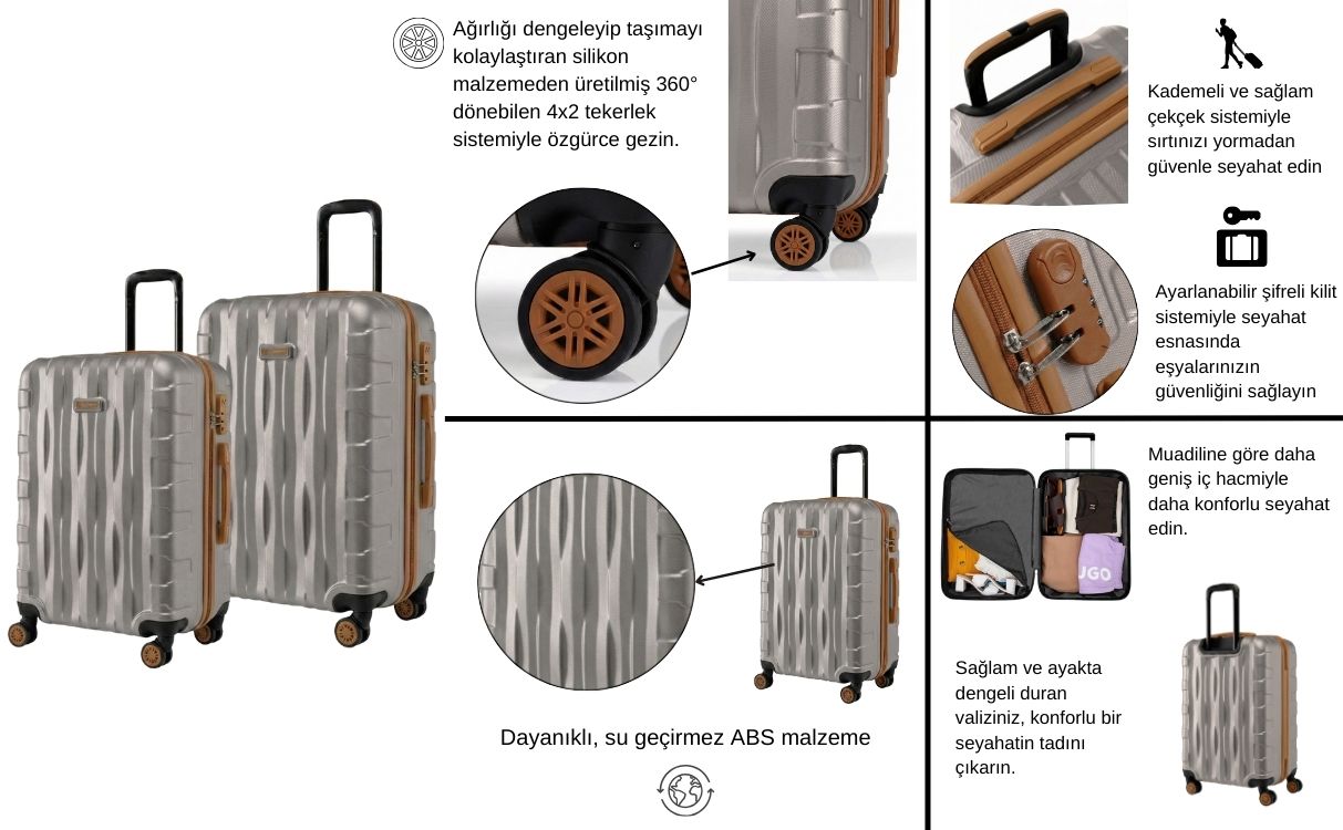 Bu valizin geniş iç alanı, tüm eşyalarınızı kolayca düzenlemenizi sağlar.  Şifreli kilit mekanizması ile eşyalarınız her zaman güvende. Her bütçeye uygun, "ucuz valiz" arayışınızda, kaliteden ödün vermeden ihtiyacınızı karşılayacak bu set, uzun ömürlü bir kullanım sağlayacaktır.