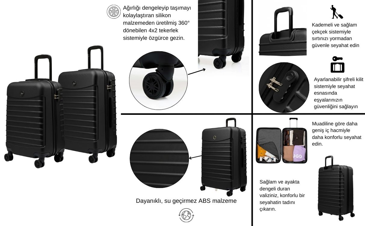 Bu valizin geniş iç alanı, tüm eşyalarınızı kolayca düzenlemenizi sağlar. Şifreli kilit mekanizması ile eşyalarınız her zaman güvende. Her bütçeye uygun, "ucuz valiz" arayışınızda, kaliteden ödün vermeden ihtiyacınızı karşılayacak bu set, uzun ömürlü bir kullanım sağlayacaktır.
