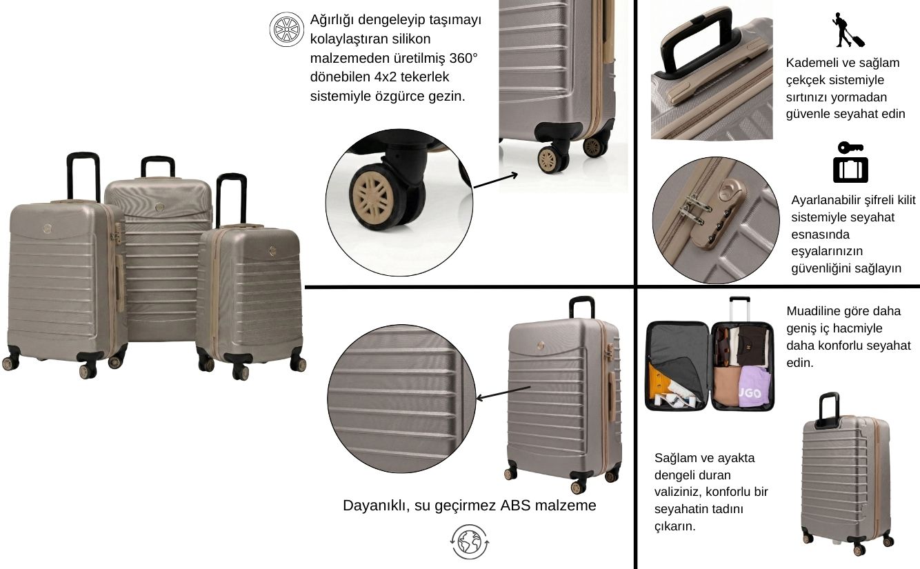 Bu valizin geniş iç alanı, tüm eşyalarınızı kolayca düzenlemenizi sağlar. Şifreli kilit mekanizması ile eşyalarınız her zaman güvende. Her bütçeye uygun, "ucuz valiz" arayışınızda, kaliteden ödün vermeden ihtiyacınızı karşılayacak bu set, uzun ömürlü bir kullanım sağlayacaktır.