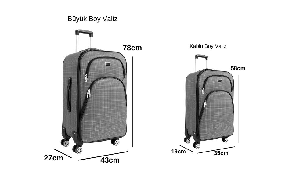 Kabin Boy Valiz: Boy x En x Derinlik: 58 x 35 x 19cm Ağırlığı: 2,9 kg