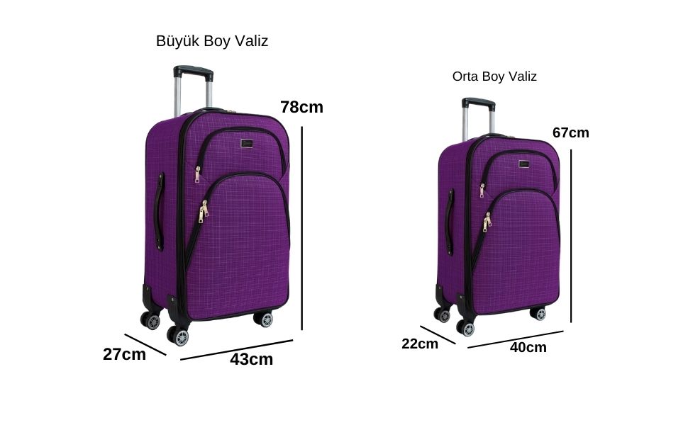 Orta Boy Valiz: Boy x En x Derinlik: 67 x 40 x 22cm Ağırlığı: 3,6 kg