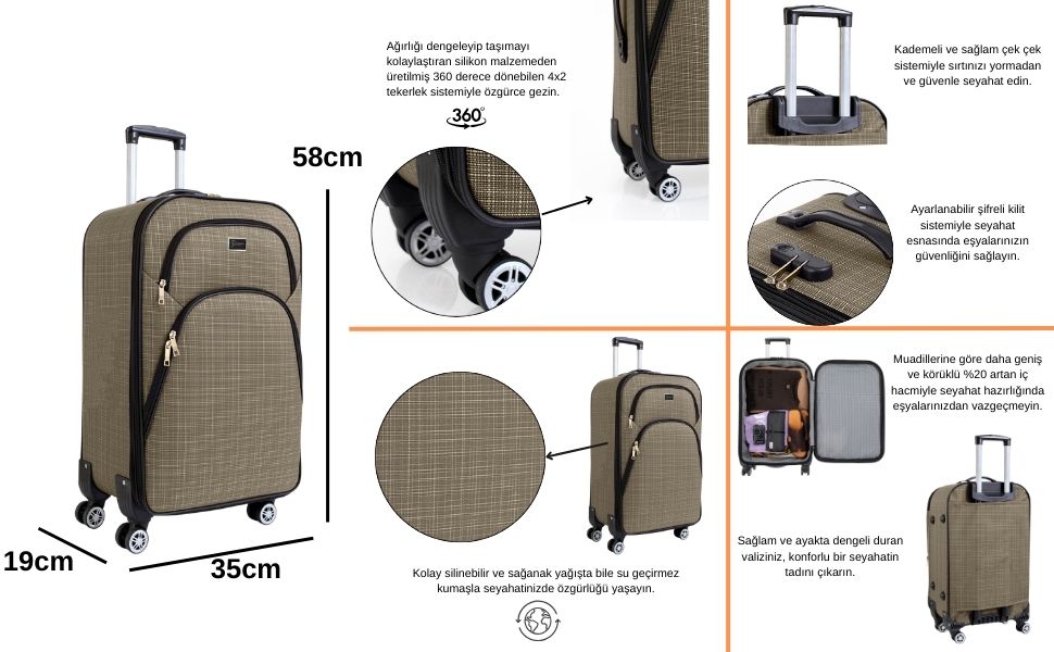 Kabin Boy Valiz: Boy x En x Derinlik: 58 x 35 x 19cm Ağırlığı: 2,9 kg