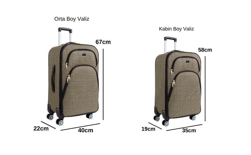 Orta Boy Valiz: Boy x En x Derinlik: 67 x 40 x 22cm Ağırlığı: 3,6 kg