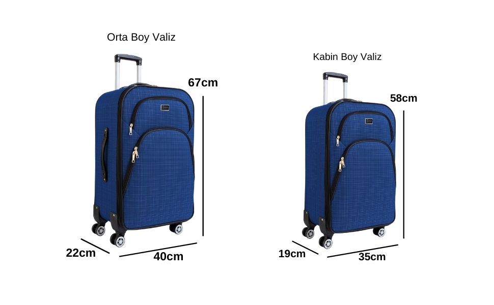 Kabin Boy Valiz: Boy x En x Derinlik: 58 x 35 x 19cm Ağırlığı: 2,9 kg